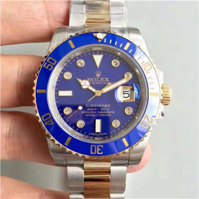 【N厂V7版一比一复刻手表】劳力士潜航者型系列116613LB-97203 蓝盘镶钻腕表 R030
