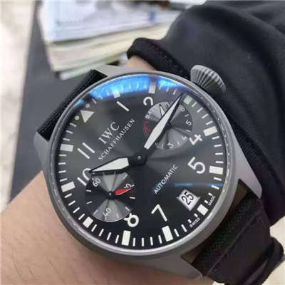 【实拍图鉴赏】YL厂1:1超A高仿手表之万国大飞特别版新款-喷砂精钢壳套黑面男表 WG257